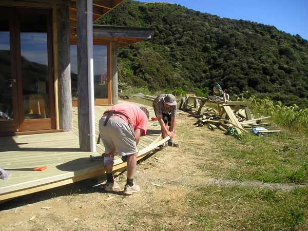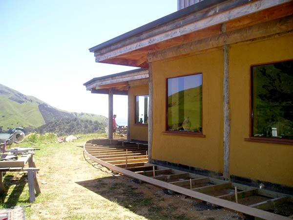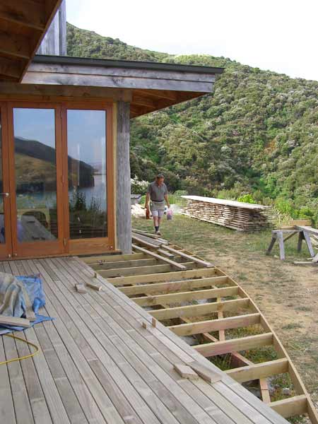 A curving timber deck was laid around the front and one side of the house