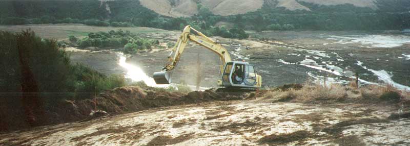 Trev digs a trench up a very steep slope for phone & electricity supplies