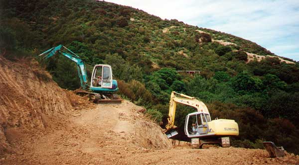 The surveying was initially done by Graham & Clint Fern and checked by Richard Walker. This was followed by the excavation of the road by Trev Wishart, a master of the digger.